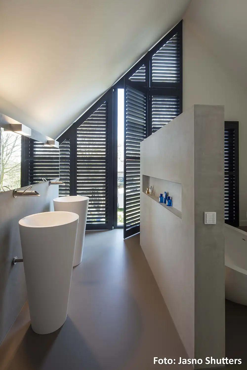 Jasno Shutters vereinen Ästhetik und Funktionalität. Die maßgefertigten, pflegeleichten Jalousien in unzähligen Farben und Ausführungen passen sich perfekt an Ihre individuellen Bedürfnisse an. Ob gerade, rund oder schräg – für jedes Fenster finden Sie die passende Lösung. Genießen Sie die Flexibilität und Eleganz von Jasno Shutters.